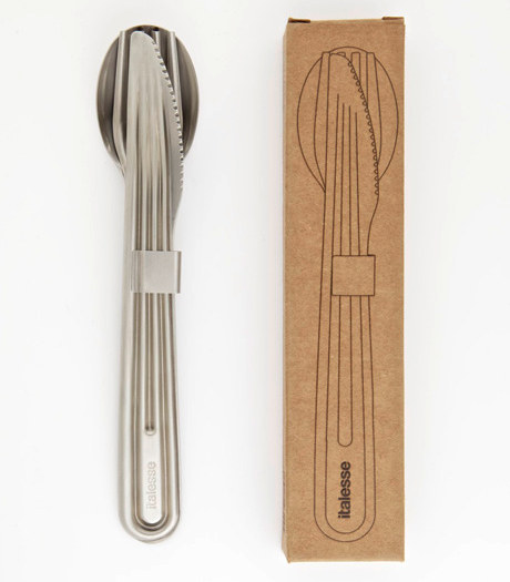 Stamp est un jeu de couverts conçus par le designer londonien Tomás Alonso pour la marque Italesse. Réalisées en tôle d’acier inoxydable emboutie, les différentes pièces qui le composent – une fourchette, un couteau et une cuillère – sont conçues pour une utilisation intérieure ou extérieure. Elles sont par ailleurs superposables, et elles peuvent être maintenues ensemble par une petite pièce de jonction.