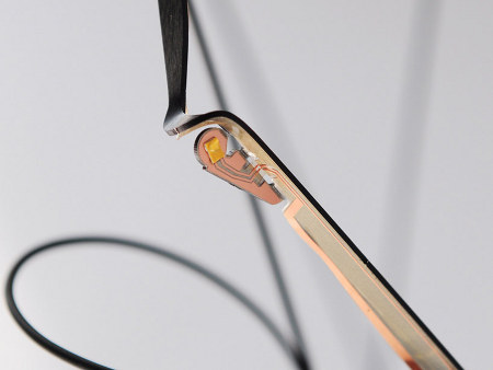 Il a ainsi imaginé un circuit électrique tridimensionnel, capable à la fois de transporter de l’électricité et d’émettre de la lumière. L’objet se fige dans différentes configuration grâce à un jeu d’aimants.