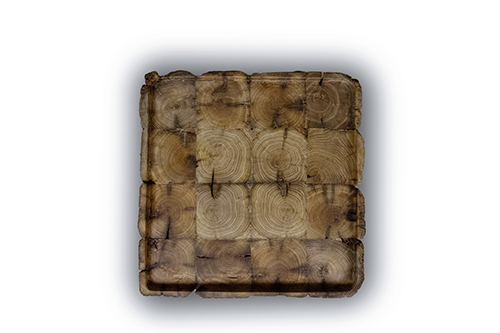 Des compositions aux lignes organiques malgré leurs formes cubiques, qui rendent un bel hommage à l’élément principal qu’est le bois. Un travail plus proche de l’artisanat d’art que du design pour lequel Timothée Musset nous expliquait : « Pour la table d’appoint, je voulais toujours partir du cube mais le faire aller sur quelque chose d’organique, qui nous ramène aux origines du bois. Dans mes travaux je cherche toujours à apporter la temporalité de la matière. Dans ce cas, ce que je trouve intéressant c’est d’apporter le doute entre la naturalité et le travail de la matière. Le plateau au-dessus est creusé, pour moi il était important d’apporter au bois que nous voyons par bout, un élément de chaleur, laissant juste l’œil venir s’installer dedans, pour y être contemplé et pour se sentir immerger dans l’élément. Pour ce qui est de la verticalité du bois, c’est un choix pour donner un élan à la table et pour créer le rapport au sol. »